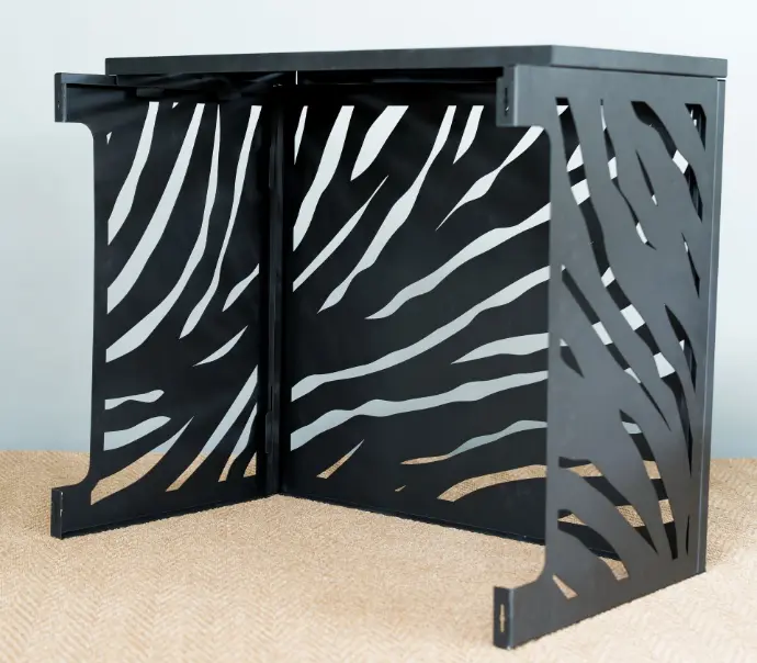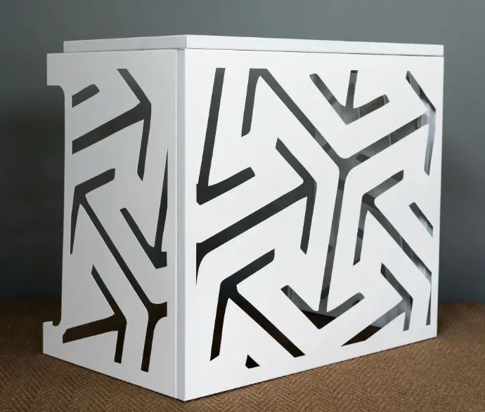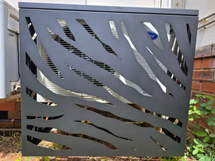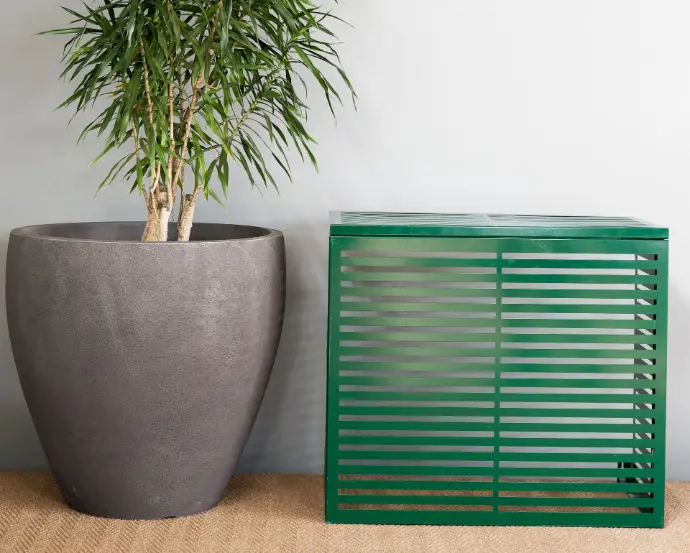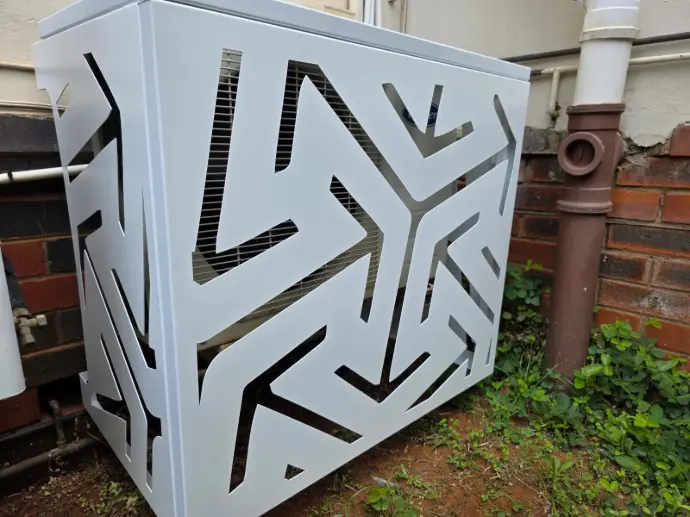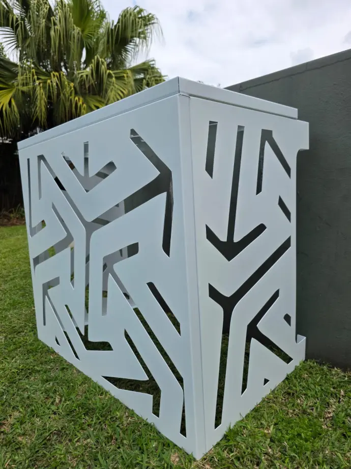 Our design philosophy emphasises functional airflow and visual integration — the slatted or perforated panels ensure optimal ventilation for your condenser units, while concealing unsightly hardware to create a cohesive outdoor aesthetic.