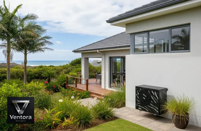 Each Ventora Designs air-conditioning cover is crafted from 1.6mm extruded aluminium (1.6LE) — a lightweight yet robust material chosen for its balance of strength, corrosion resistance, and aesthetic versatility. Aluminium’s natural resistance to rust makes it an ideal solution for coastal environments, while its clean, modern finish complements contemporary architectural styles.